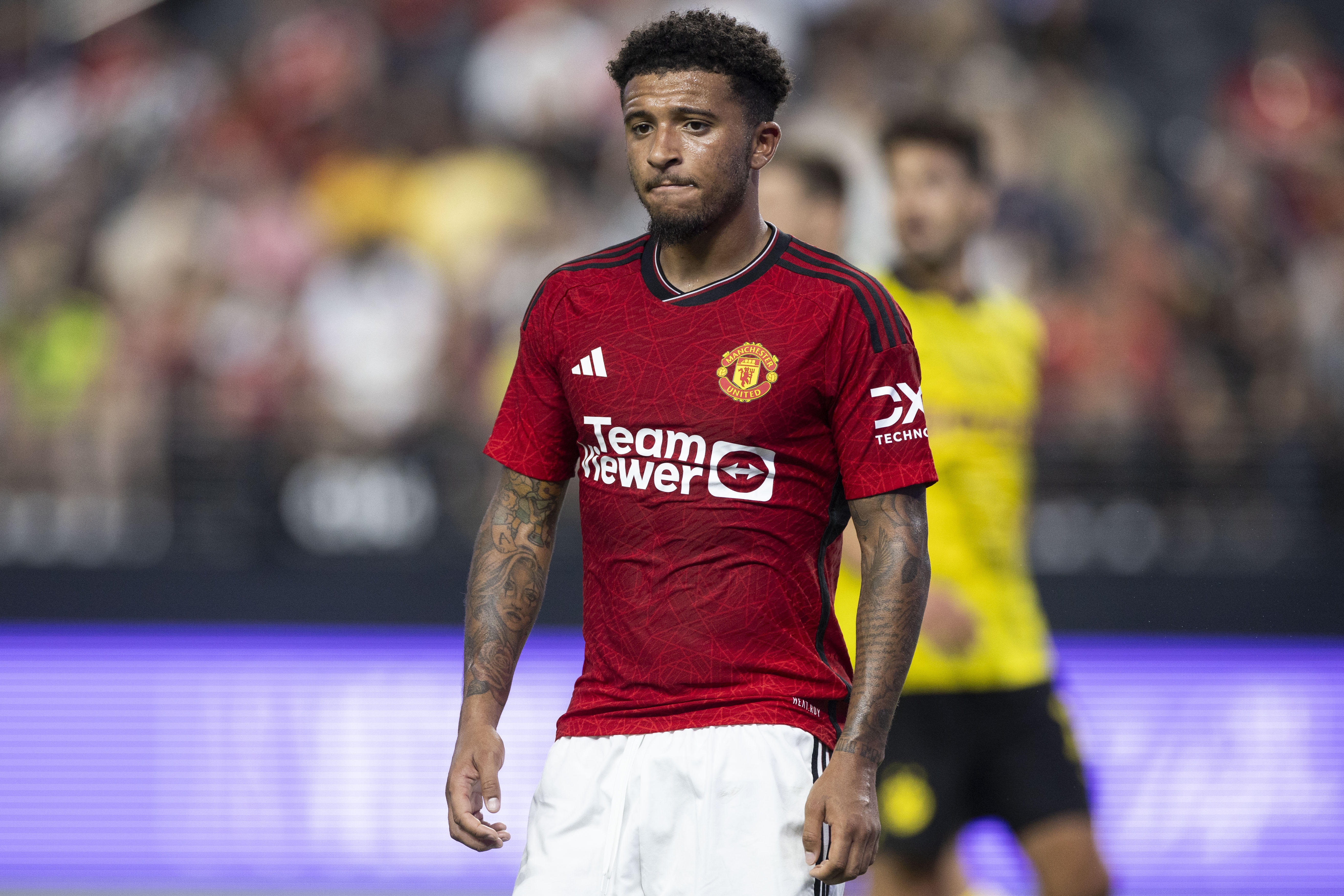 桑乔已经返回曼联,在阿莫林的率领下进行季前训练。然而,由于去年与俱乐部高层的冲突,曼联仍急于出售这位花费7300万镑引进的球星。目前,桑乔是曼联五名被禁止进入卡灵顿训练基地的球员之一。